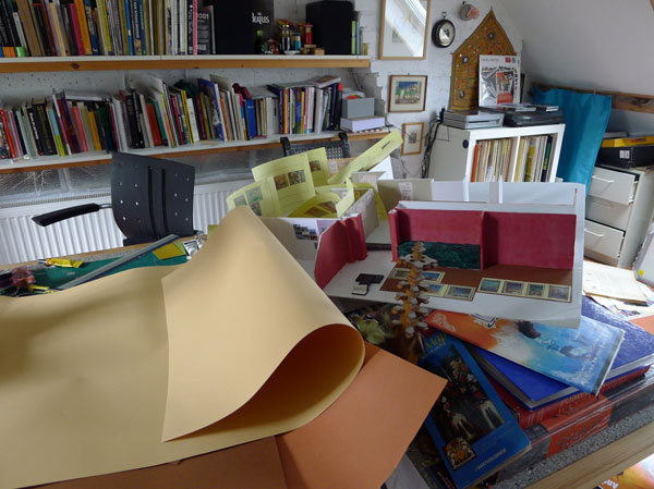 De indeling van de verschillende kunstdisciplines in vakjes zoals die op de kunstacademies tot op heden (zelfs, helaas!) gehanteerd wordt, komt in de werkelijkheid gelukkig niet voor. Buiten de lijntjes kleuren is dan ook mijn devies in deze. Ik heb dan ook al jaren decors ontworpen en inmiddels ook enkele tentoonstellingen en één aarden object voor een natuurspeeltuin vormgegeven.