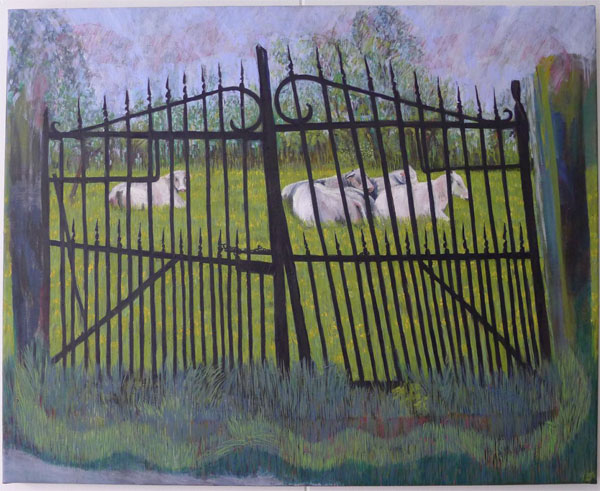 Hek te ’s Herenelderen met Belgische witten. 2013. Ca. 90 x 110 cm.