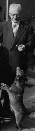 Het hondje heet Tumke en was een van de vele bastaardhondjes die de familie van mijn grootouders in Maastricht in opeenvolgende lijn als huisdier heeft gehad. Ze werden allemaal Tumke genoemd, en deze hier lustte koffie met melk. Nogal onorthodox om dat aan een hondje te geven. Ook ik moet van orthodoxie niets hebben, maar dan ook echt helemaal niets. Daarnaast leek de man op de foto, mijn grootvader, een braaf man. Leek, maar hij was het niet. En dat hij het niet was, liet hij zich niet aangaan. En dat is een buitengewoon verstandige houding. In onze huidige maatschappij net zo goed als in de zijne. Veel te jong gestorven, ik was acht of zo, wat had ik deze man graag beter leren kennen.