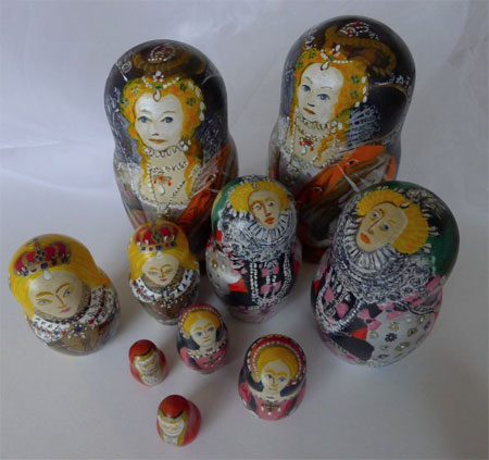 Hier een metamorfose van Elizabeth Regina, de eerste met die naam. Als toeristische product ontwikkeling gedacht voor English Heritage. Er zijn meerdere series in de maak. Ik moet eens foto's gaan opsturen naar hun retail afdeling. Advies: het ontwerp laten uitvoeren in Rusland.